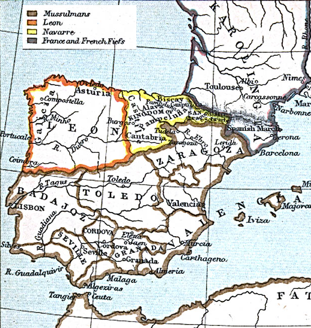 O primeiro reino cristão foi o das Astúrias, fundado por Pelágio, e mais tarde de Reino de Leão. Nos princípios do século X a província de Navarra tornou-se independente, formando o Reino de Navarra.